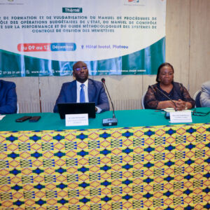 L’hôtel Ivotel du Plateau a accueilli ce lundi 09 décembre, la cérémonie officielle d’ouverture de l’ atelier de formation et de vulgarisation du manuel de procédures de contrôle des opérations budgétaires de l’Etat, du manuel de contrôle orienté sur la performance et du guide méthodologique des systèmes de contrôle de gestion des Ministères.